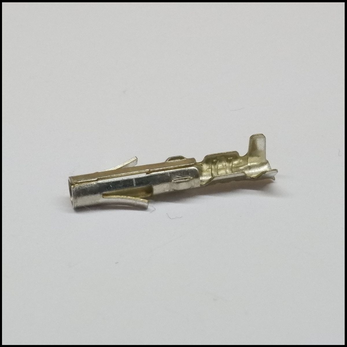 Terminal elétrico metálico prateado em fundo branco