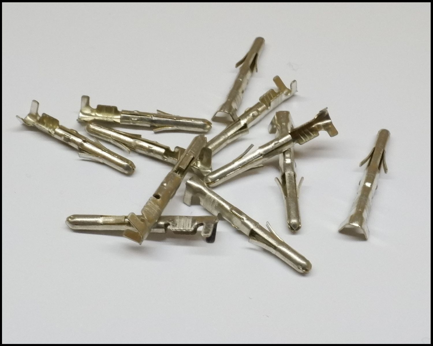 Terminais metálicos prateados sobre fundo branco