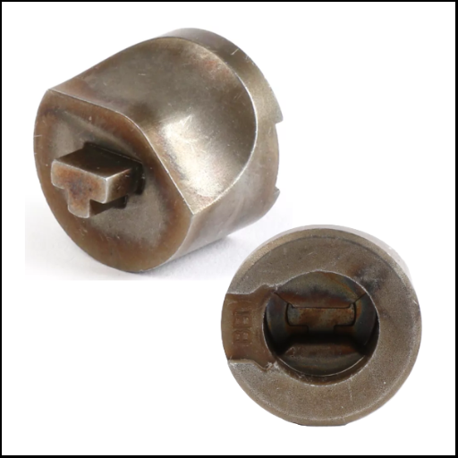 Peças metálicas cilíndricas castanhas com peça em T e texto BIO