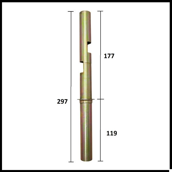 peça metálica cilíndrica dourada com ranhuras e medidas em milímetros