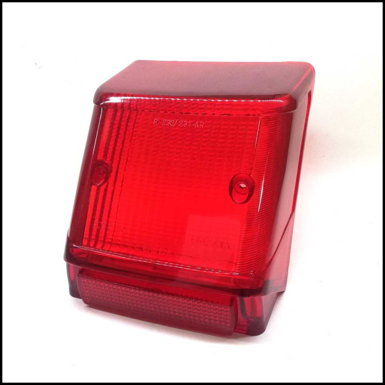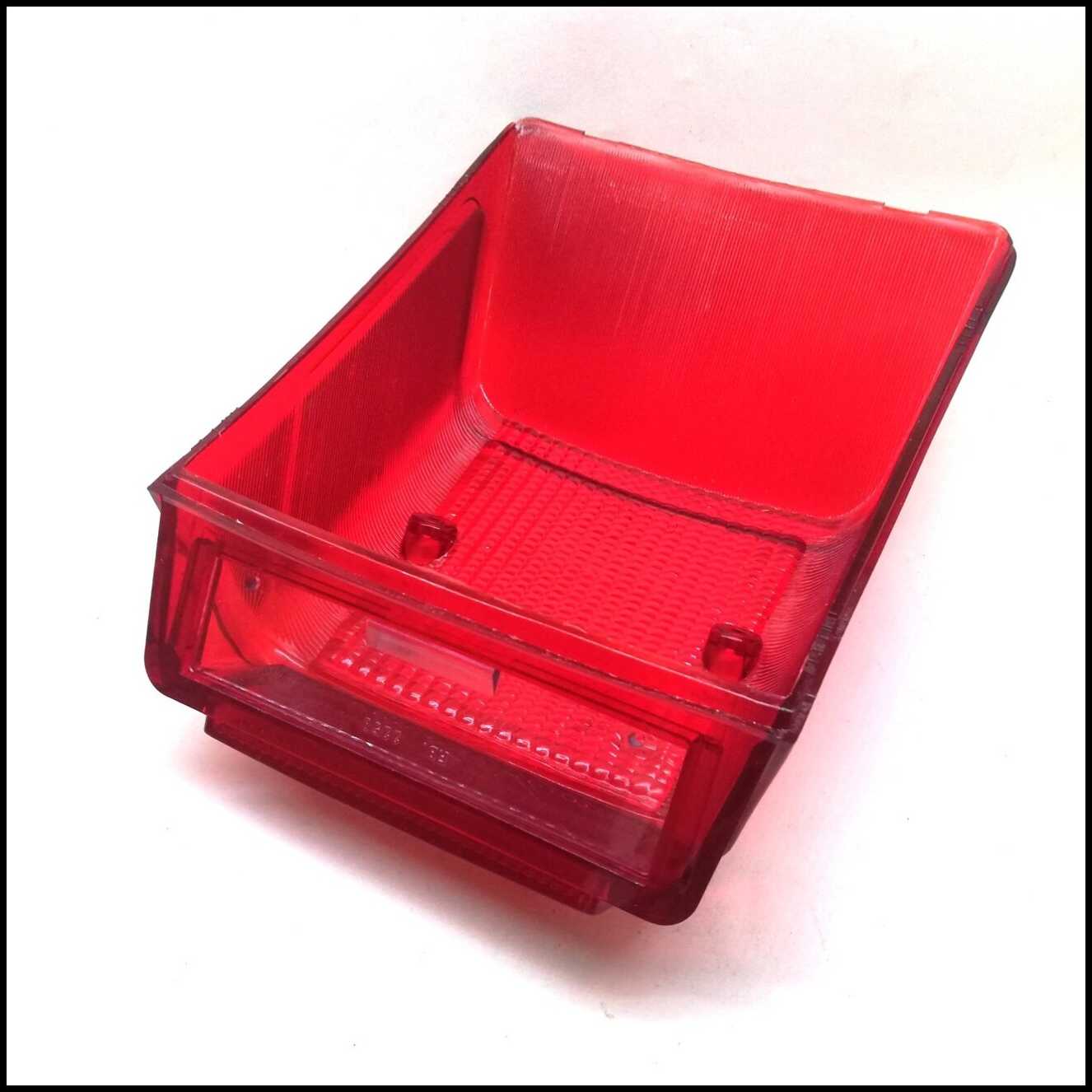 Luz traseira vermelha em plástico translúcido com textura quadriculada