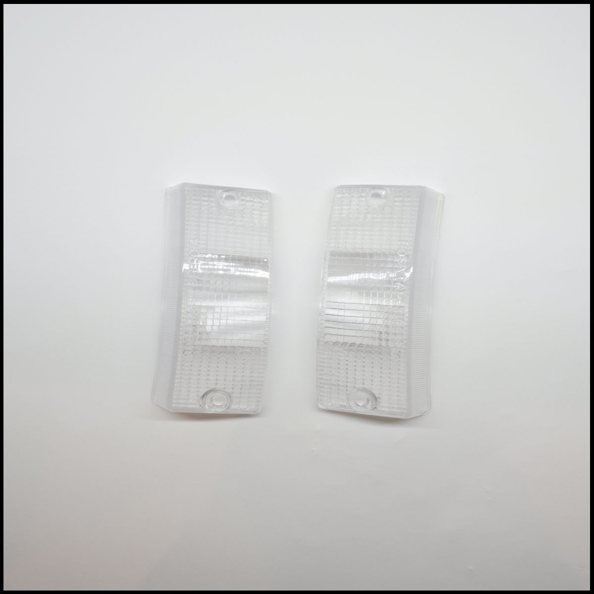 Conjunto de duas lentes transparentes para farol de veículo em superfície branca