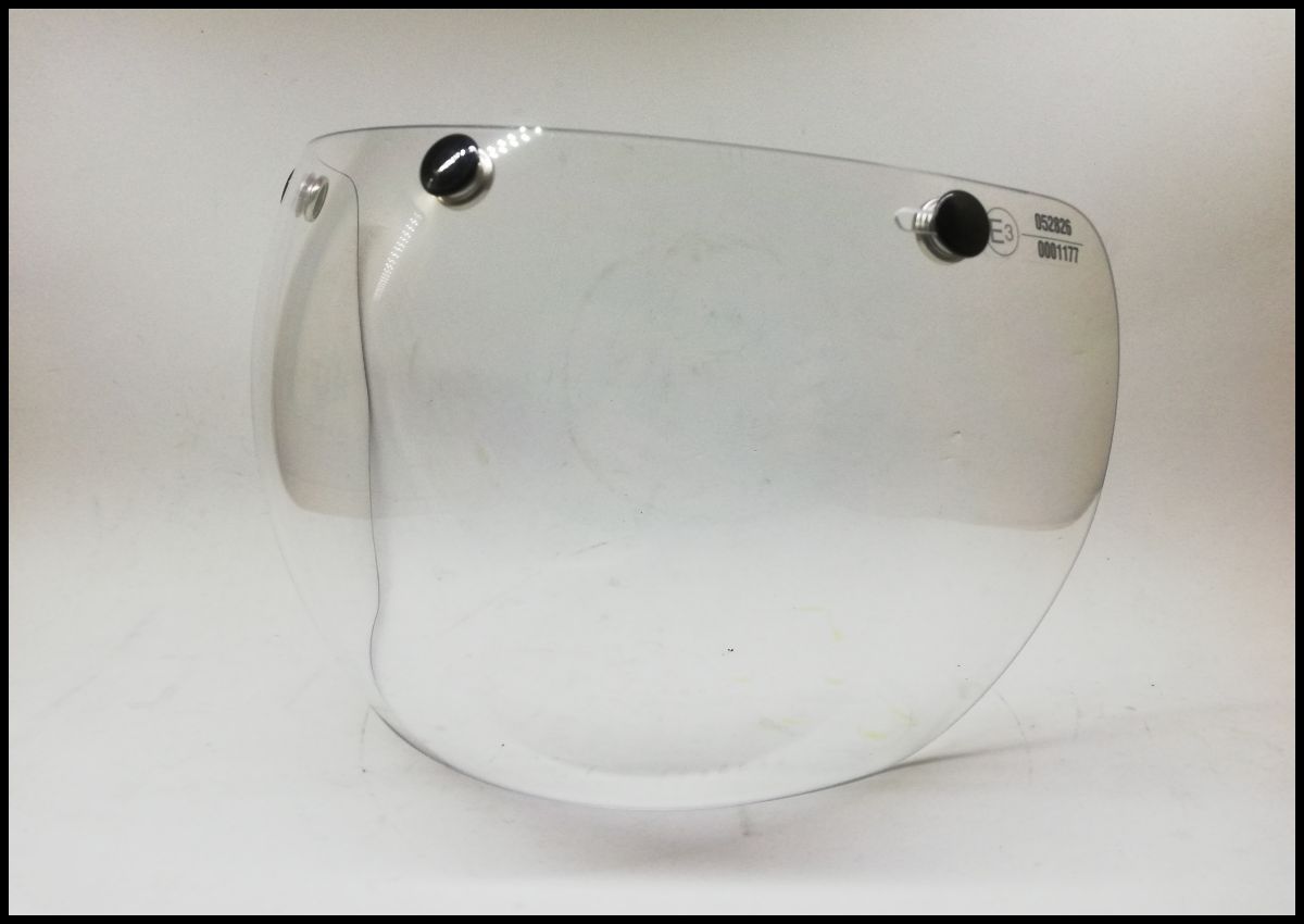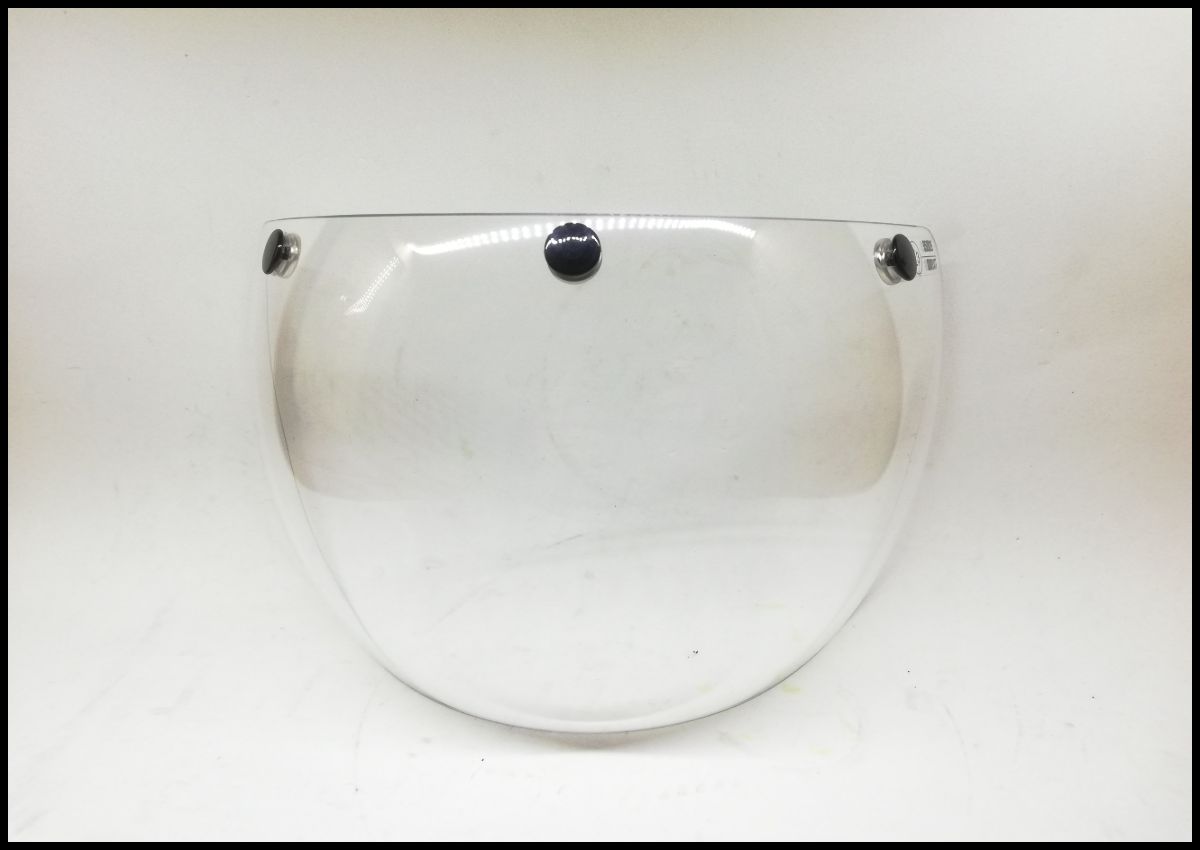 Viseira facial transparente com fechos metálicos e botão preto